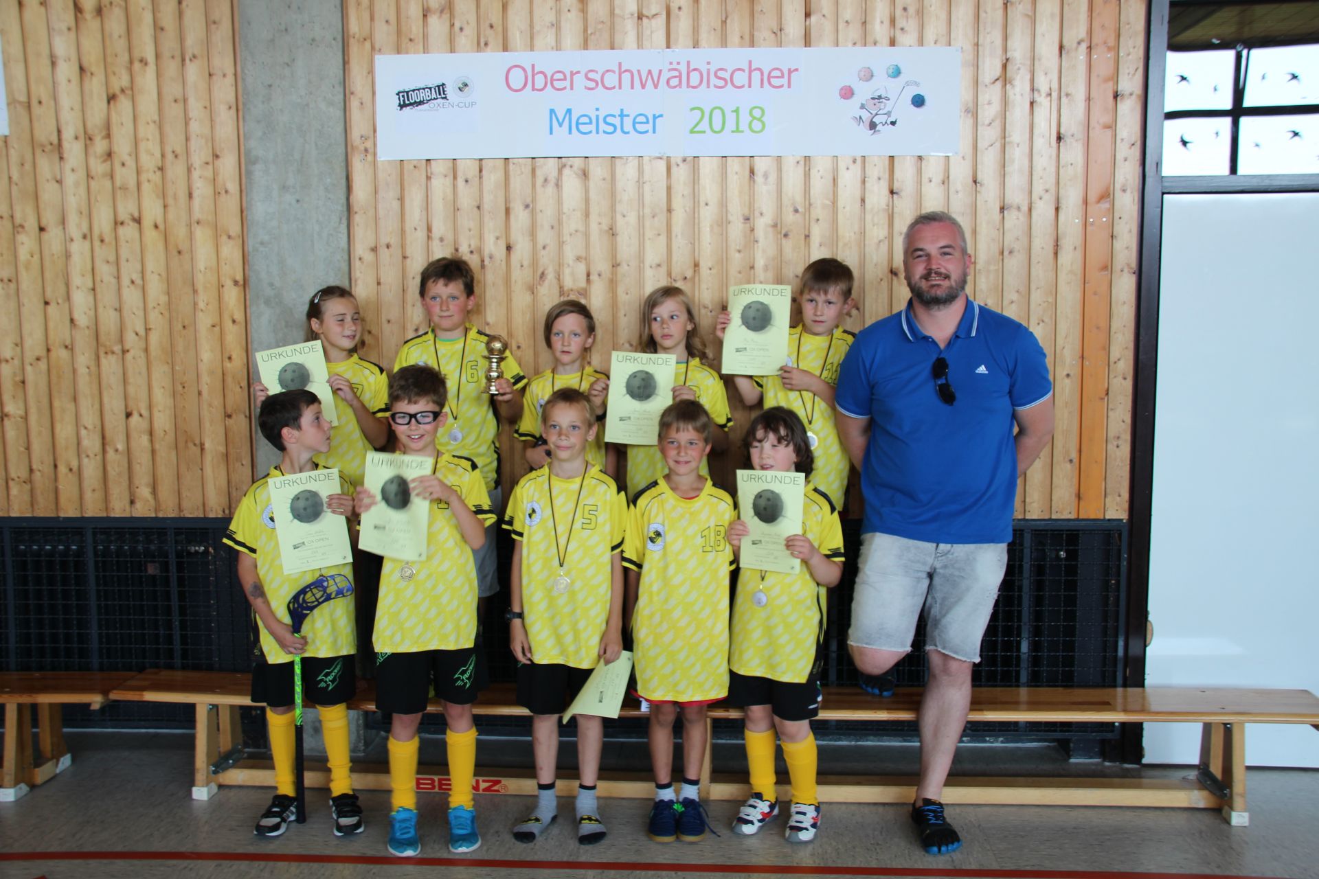 In der Kategorie U9 konnten sich die „Stadtbach Piranhas 1“ durchsetzen. Sie siegten denkbar knapp und schlussendlich sehr glücklich mit 1:0 im Finale gegen den SV Ochsenhausen. Den Oberschwäbischen Meistertitel konnten sie aber dem SVO nicht mehr nehmen, da dieser in den vorangegangenen Turnieren bereits einen komfortablen Vorsprung in der Oxen-Cup-Gesamtwertung erspielt hatte. So freuten sich am Ende die Spieler von SVO-U9-Trainer Ralf Molzahn (Max Maier, Hannah Heckelsmüller, Julien Heid, Jamie Heid, Frederik Sperling, Jan Kischka, Brynmor Graf, Elias Wachter, Timo Kohler) über die goldene Oxen-Cup-Trophäe.