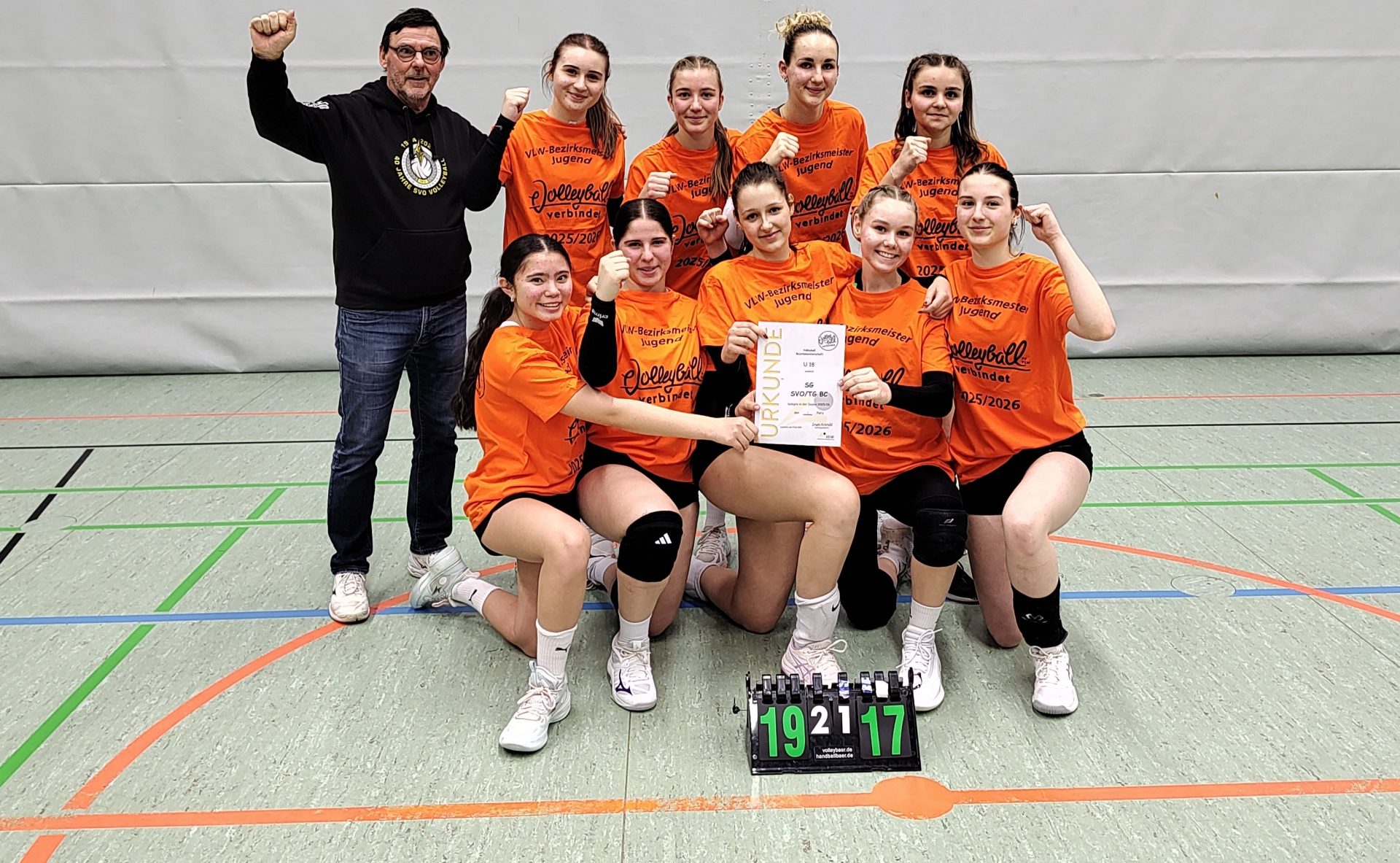 In einem hochdramatischen Finale gelang es den U18-Mädchen der SG SV Ochsenhausen / TG Biberach die TG Bad Waldsee 2 mit 2:1 (22:25, 25:17, 19:17) zu besiegen. Dadurch wurden die U12, U14, U16 und U18 Bezirksmeister 2025/26.