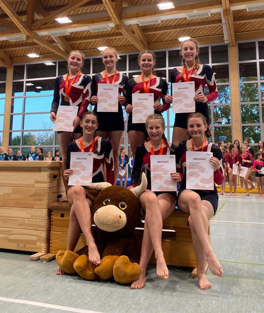 Die Mannschaft des SV Ochsenhausen konnte sich so insgesamt 188,30 Punkte erturnen und wurden bei der Siegerehrung überraschend auf den dritten Platz gerufen. Somit sichern sich die Mädchen zusammen mit den Turnerinnen des TSV Dietenheim (202,30 Punkte) und des TSV Hochmössingen (191,60 Punkte) die Qualifikation zum Landesfinale.