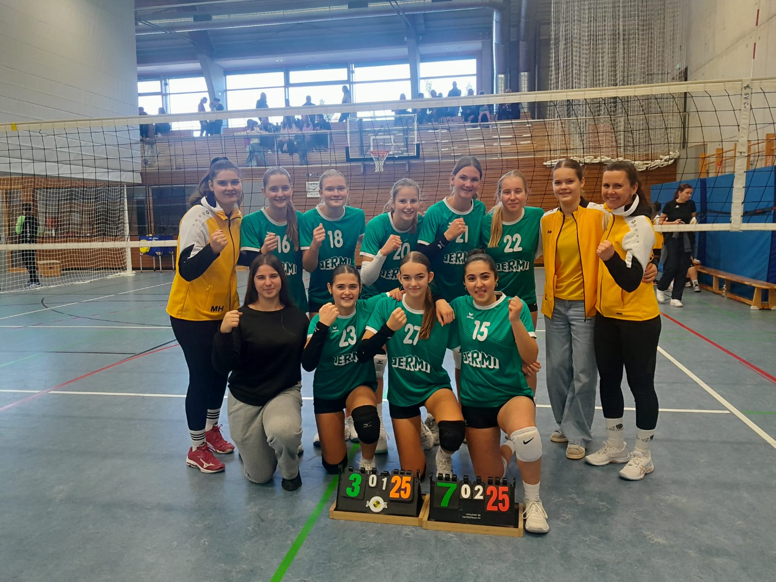 Mit zwei Siegen gegen den VC Baustetten (25:22 und 25:20), sowie gegen den SSV Ulm (25:9 25:20) bleiben die U18-Mädchen weiterhin an der Spitze ihrer Staffel und haben das Erreichen der Bezirksendrunde am 1.Februar 2026 endgültig geschafft. In zwei Wochen geht es für das Team von Peter und Martin im Heimspiel gegen den VfB Ulm dann um den ersten Platz in der Staffel.